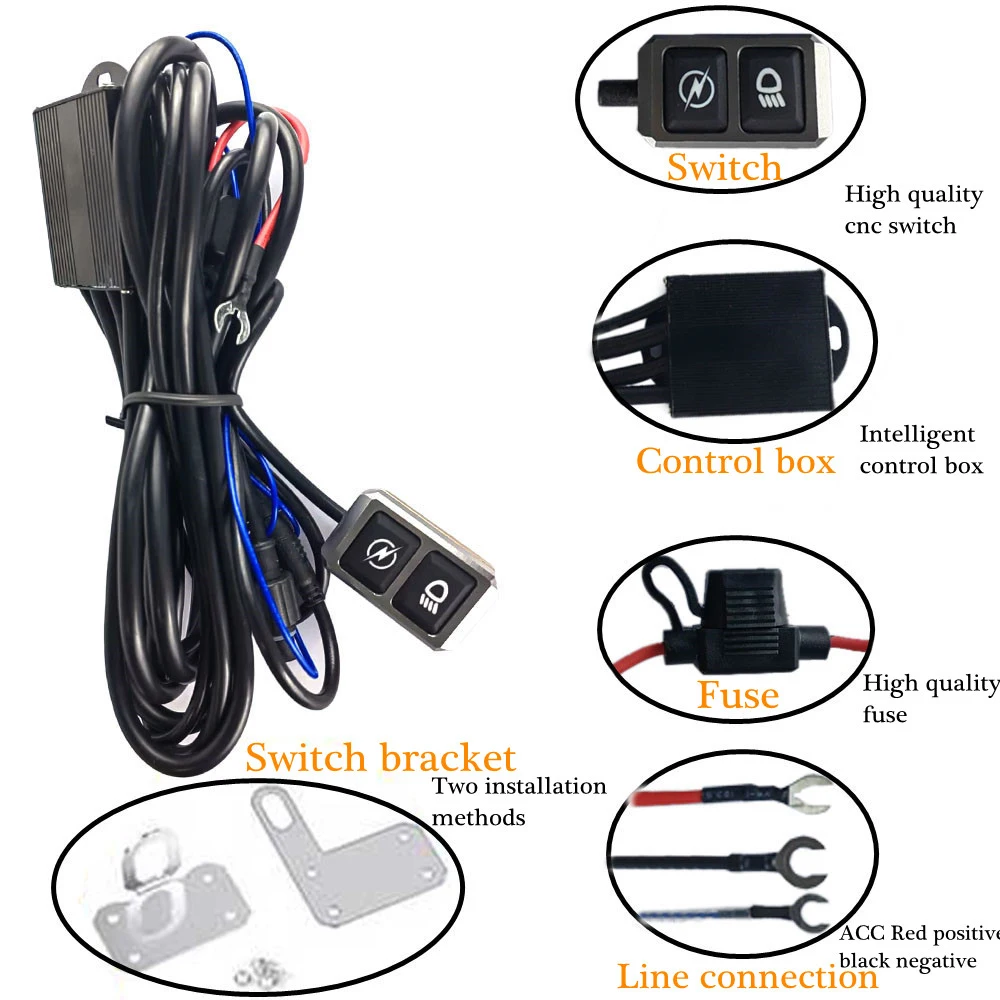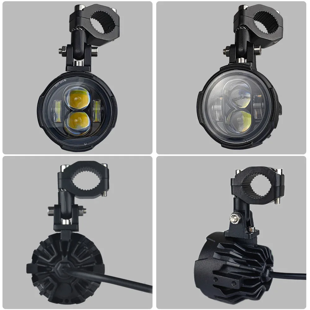 Paire de Phares LED Moto 100W – Feux Antibrouillard Auxiliaires Bicolores avec 3 Modes de Clignotement